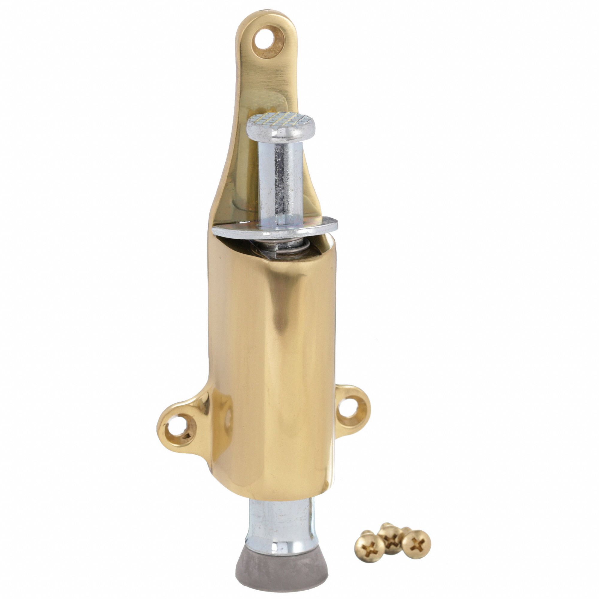 GRAINGER APPROVED Plunger Door Holder Polished Brass, Solid Brass, 1 1